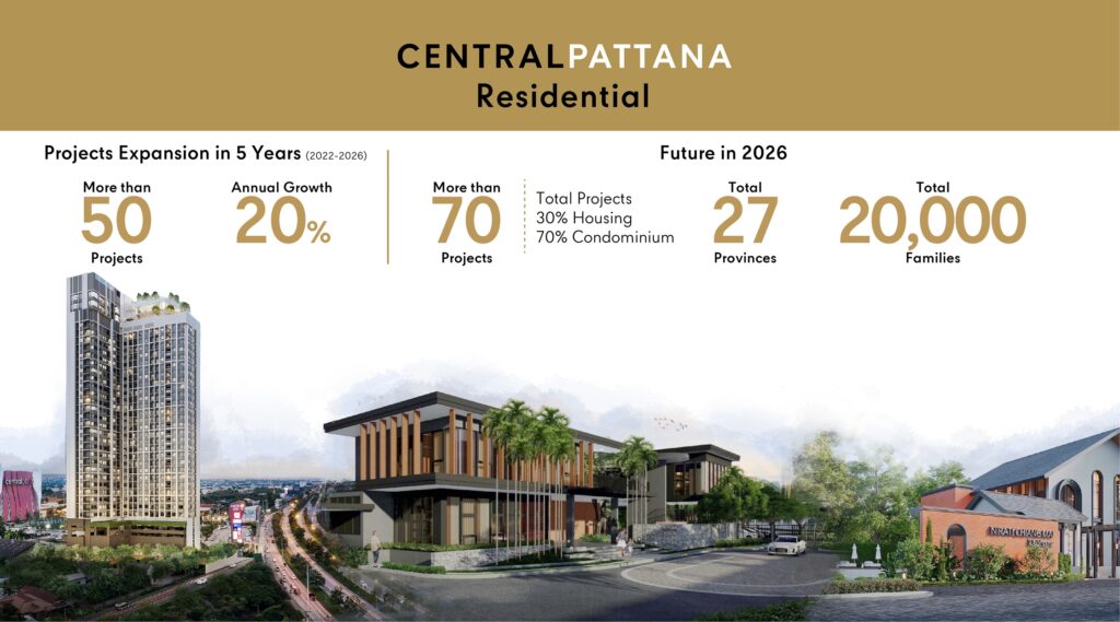 With residential projects covering 27 provinces, more than 70 projects, and more than 20,000 Central inhabitants in the future, the company’s goal is for the Residential business to develop to more than 50 projects by 2026 and sustainably grow at least 20 percent per year.