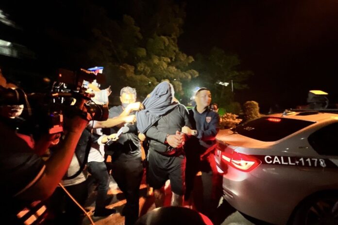 In a late-night operation, officers promptly transferred Mr. Olaf to Nong Prue Police Station at approximately 11:05 p.m. Covered in a cloak and wearing a mask to conceal his identity, Mr. Olaf remained tight-lipped, showing no inclination to respond to reporters’ inquiries. The police, understanding the need for an unobstructed pathway due to Mr. Olaf’s limited mobility, requested cooperation from the media. Once inside the interrogation room, he was isolated for questioning, separated from Madame Petra, another suspect who had surrendered earlier.