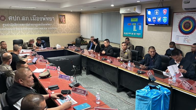 On a recent evening, Deputy Commissioner of Police, Pol. Gen. Surachet Hakpal, took to the skies in a helicopter, personally overseeing the progress of the investigation. Subsequently, a crucial meeting was convened, bringing together key stakeholders from agencies such as the Chonburi Provincial Police Station, Pattaya City Police Station, Nong Prue Police Station, Pattaya Tourist Police, Pattaya Immigration Police, and other relevant entities. The meeting, held at the Muang Pattaya Police Station in the serene surroundings of Nong Prue Subdistrict, Bang Lamung District, Chonburi Province, aimed to consolidate and summarize the collective efforts.