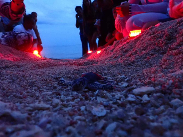 Members of the Koh Tao Conservation Club, Koh Tao Subdistrict Municipality officials, and dedicated volunteers united their efforts in vigilantly overseeing the turtle nest area. They patiently facilitated the natural emergence of the baby turtles. As twilight painted the sky on September 11, two little ones made their debut at precisely 7:09 p.m., followed by a dozen more at 10:01 p.m.