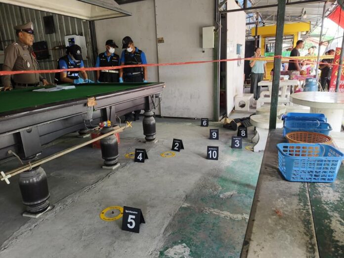 Further CCTV angles showcased the chilling episode from within the snooker shop, painting a stark picture of the brutality that unfolded. Among the patrons present was Mr. Somporn, enjoying a game with friends. Mr. Akkapon’s sudden intrusion, followed by the altercation and subsequent gunshots, left the snooker shop in a state of shock and terror.
