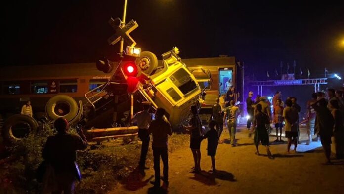 In a somber incident that unfolded on the evening of January 19, 2024, tragedy struck as a train on the Chiang Mai Line, Train 109 Bangkok Apiwat-Chiang Mai, collided with a truck, resulting in the unfortunate demise of the train’s driver and leaving another individual injured. The catastrophic event unfolded just before the train was set to reach Chum Saeng Station, located in Phan Lan Subdistrict, Chum Saeng District, Nakhon Sawan Province.