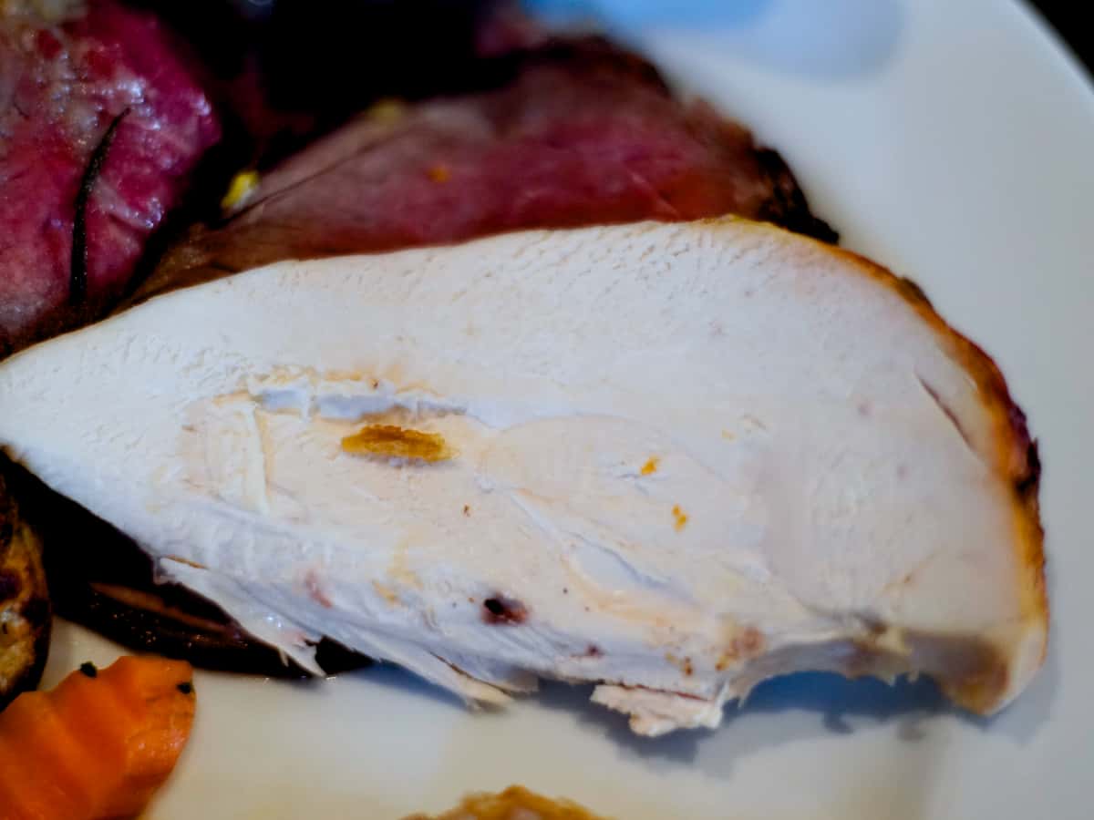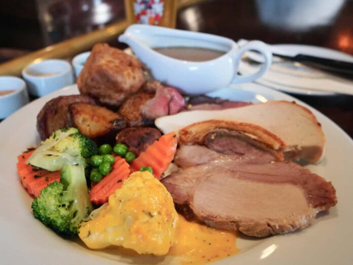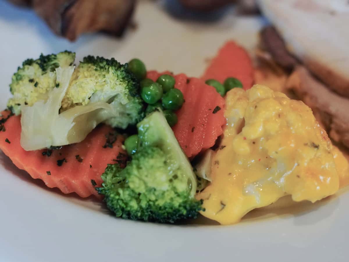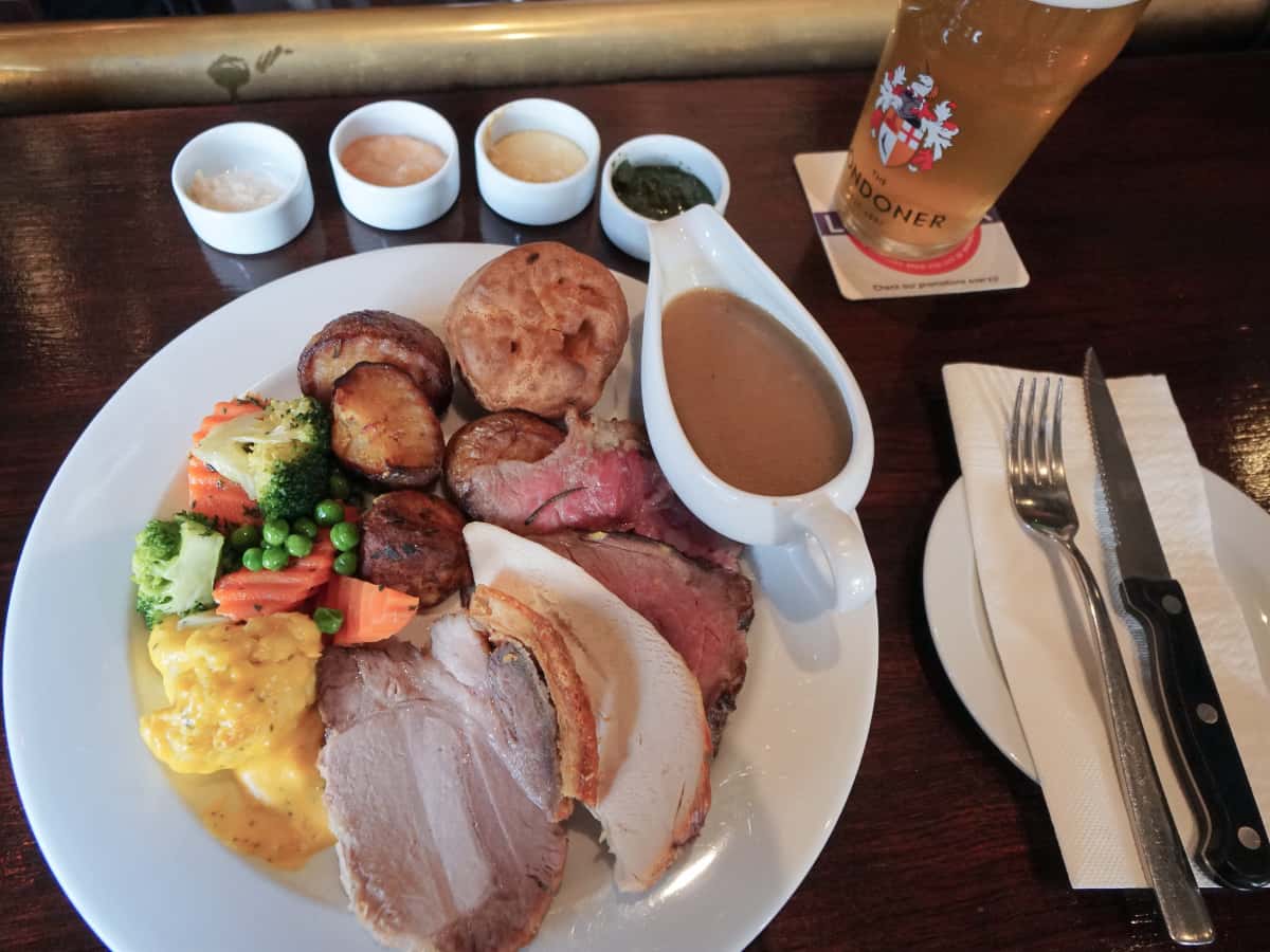 Opting for the mixed plate, we found a satisfying selection of four slices of meat, providing a varied taste experience in line with the traditional British roast. Additional meat, vegetables, or Yorkshire puddings were available upon request, allowing for customization according to personal preferences. Seasonal vegetables, such as carrots, peas, broccoli, and cauliflower cheese, complemented the meal adequately.
