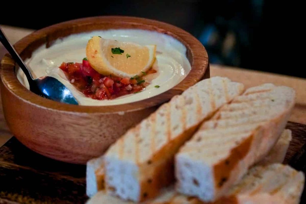 A standout from the starters menu is the Hummus with olive oil, tomato salsa, and flatbread. The hummus, made with tahini, is smooth and creamy, and the homemade flatbread, baked fresh, adds a rustic touch. A squeeze of lemon gives the dish a refreshing lift, while the tomato salsa and olive oil provide complementary flavors, making for a simple but satisfying appetizer.