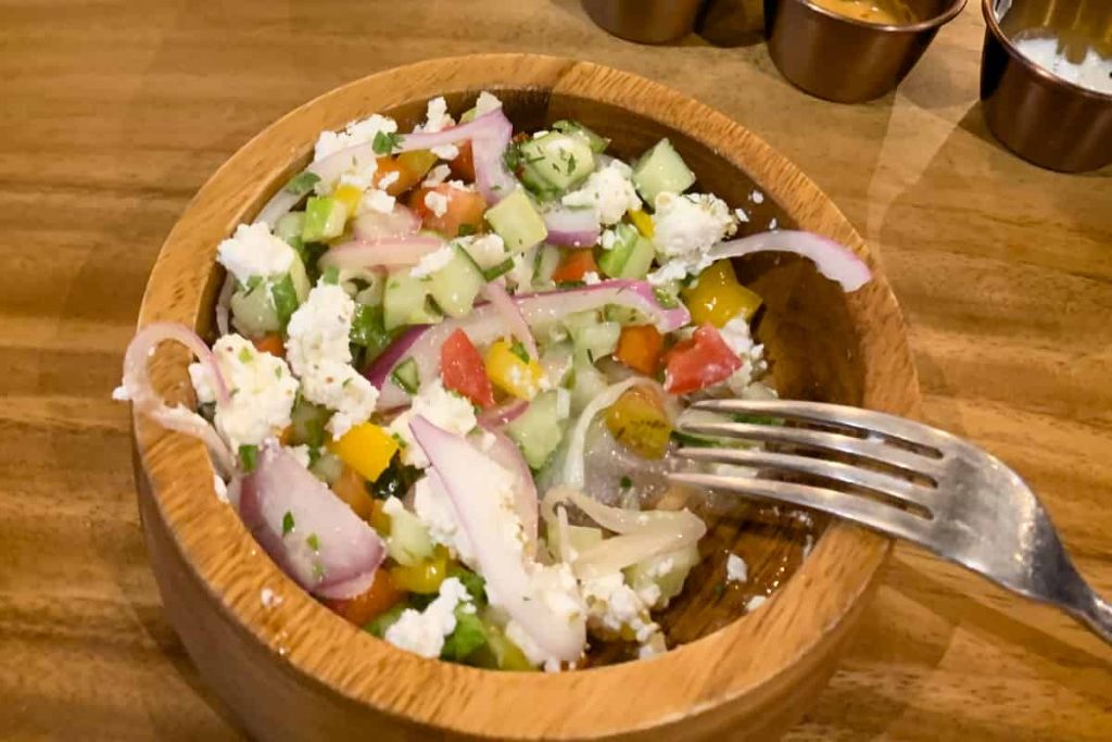 For those seeking a lighter bite, the Feta Salad provides a pleasing contrast to the heartier mains. The combination of fresh tomato, cucumber, onion, bell pepper, and red cabbage creates a vibrant base, with the creamy feta lending richness. The seasoning, including a dash of ground pepper, is subtle but effective, elevating the natural flavors of the ingredients without overpowering them.