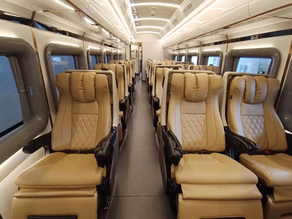 The ‘Beyond Horizon’ marks Thailand’s first domestically produced passenger train under the ‘Thai First’ initiative, promoting local industry support and reducing technology imports by over 44%. Designed entirely by the research team, the train draws inspiration from business-class aircraft cabins and first-class rail experiences, boasting dimensions of 24 meters in length and 2.80 meters in width, with 25 seats, including 8 Super Luxury and 17 Luxury seats.