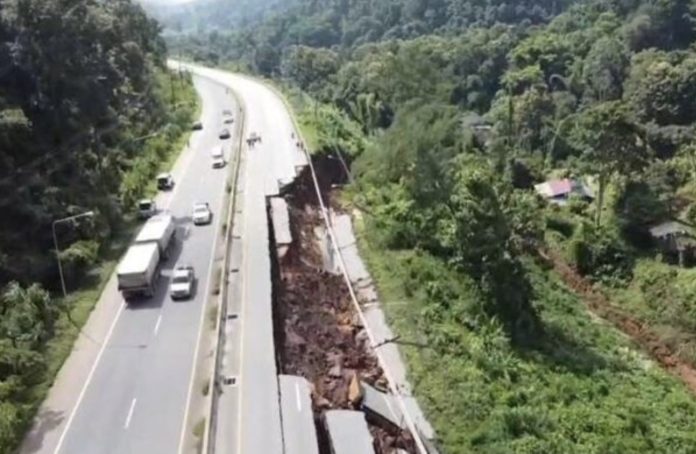 The collapse occurred on Phahon Yothin Road, along the Nakhon Sawan-Chiang Rai route, approximately six kilometers from Phayao University. The affected section spans 100 meters in length and has sunk to a depth of about 10 meters. The area borders Ban Chon Daen in Lampang’s Ngao District and Ban Mae Ka Tha Kham in Phayao’s Mae Ka Subdistrict.