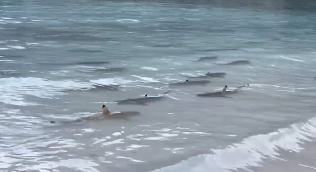 KRABI — Over twenty blacktip reef sharks, including adults and juveniles, were observed feeding at Maya Bay on Sunday, according to officials from Hat Noppharat Thara-Mu Ko Phi Phi National Park. The sighting highlights the thriving shark population in the area.