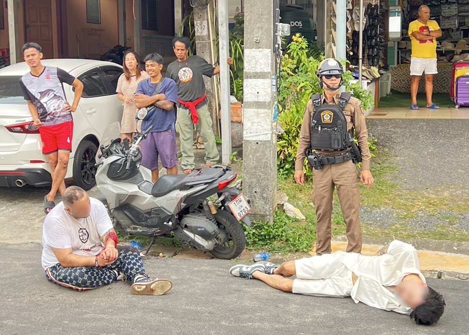 The incident began around 4:45 p.m. when Patong Police responded to reports of an altercation outside the Patong Condotel Hotel. The situation escalated as the suspects fled the scene in a black Ford pickup truck, heading towards Karon district. Their escape caused several accidents along the route. Police patrol units from Patong, with support from Karon Police, set up roadblocks to intercept the vehicle. By 5:10 p.m., the truck was stopped near the Big C Wat Karon on Patak Road.