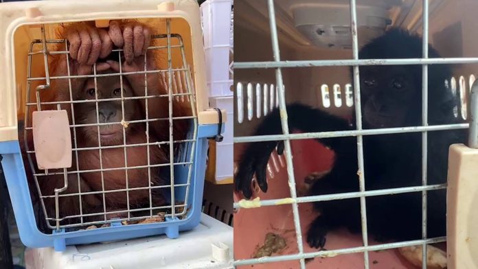 In addition to the orangutans, officials discovered one Chinese goral and three monkeys of unidentified species inside six plastic baskets and a wooden box. The driver, a 63-year-old man identified only as “Winai,” and a 45-year-old woman were detained for questioning.
