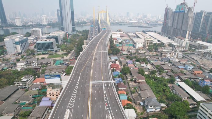 On Wednesday, January 29, 2025, Deputy Prime Minister and Transport Minister Suriya Jungrungreangkit will lead the inauguration of Thailand’s widest suspension bridge, Thossamaharachan Bridge, offering free public trials. The event will take place at the Suksawat Expressway toll booth in Rat Burana District, Bangkok. Spanning 42 meters and featuring eight lanes, the bridge is part of the Rama 3–Dao Khanong–Western Outer Ring Road expressway project, developed by the Expressway Authority of Thailand (EXAT). This initiative aims to enhance travel convenience for the public as a New Year’s gesture.